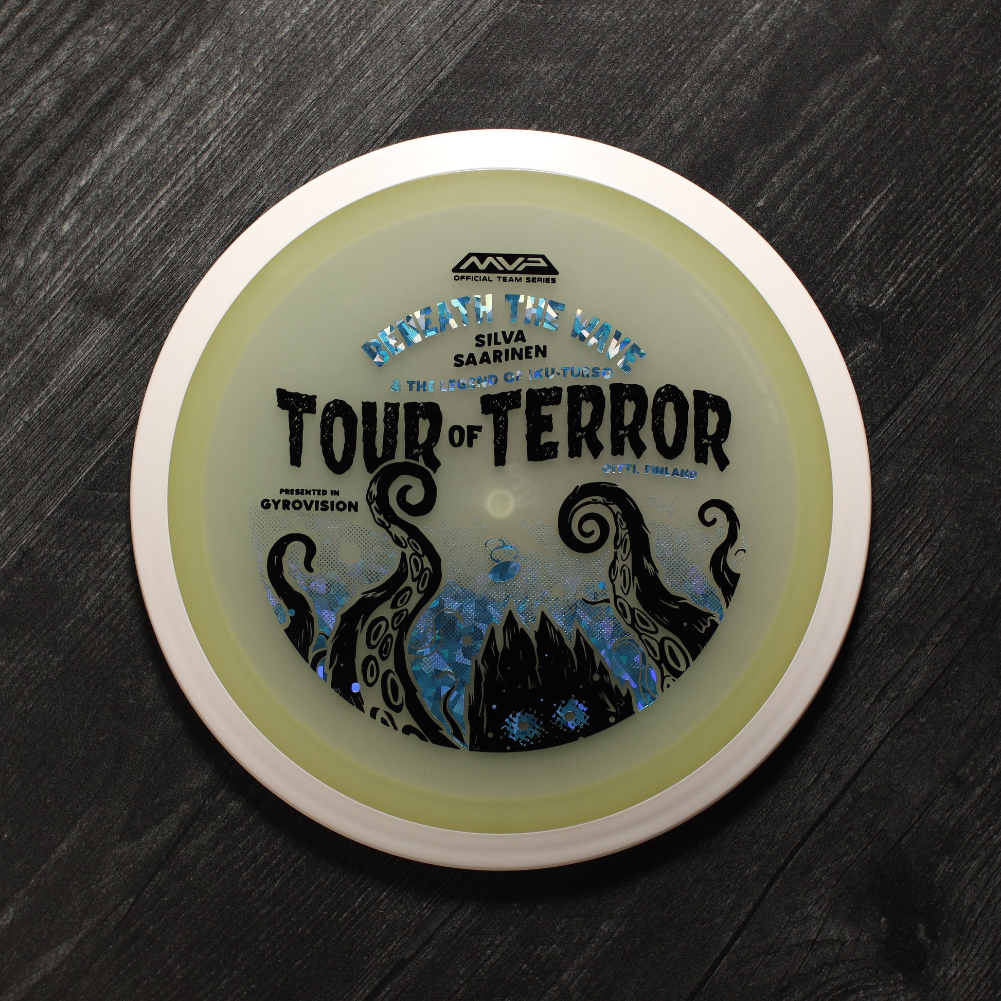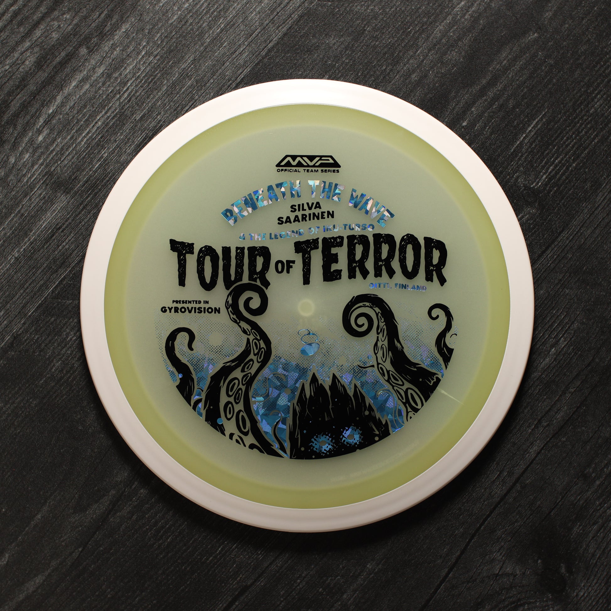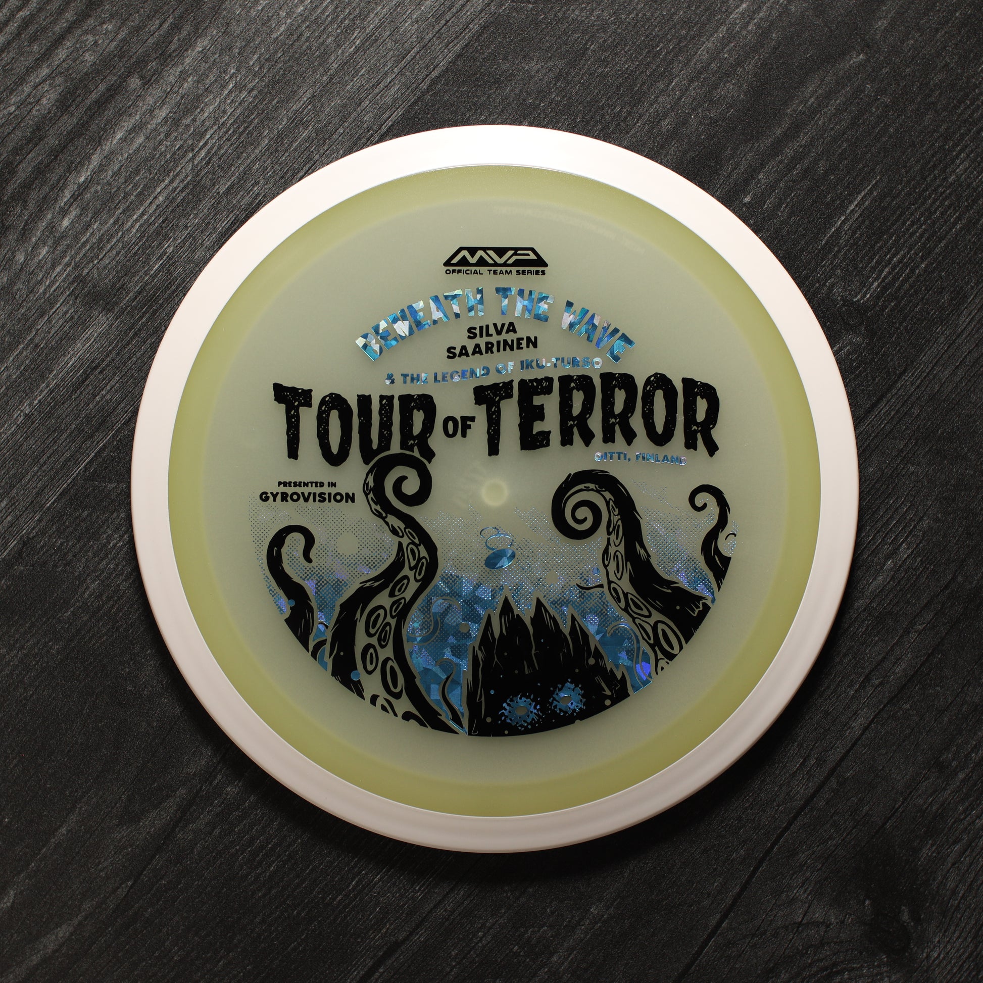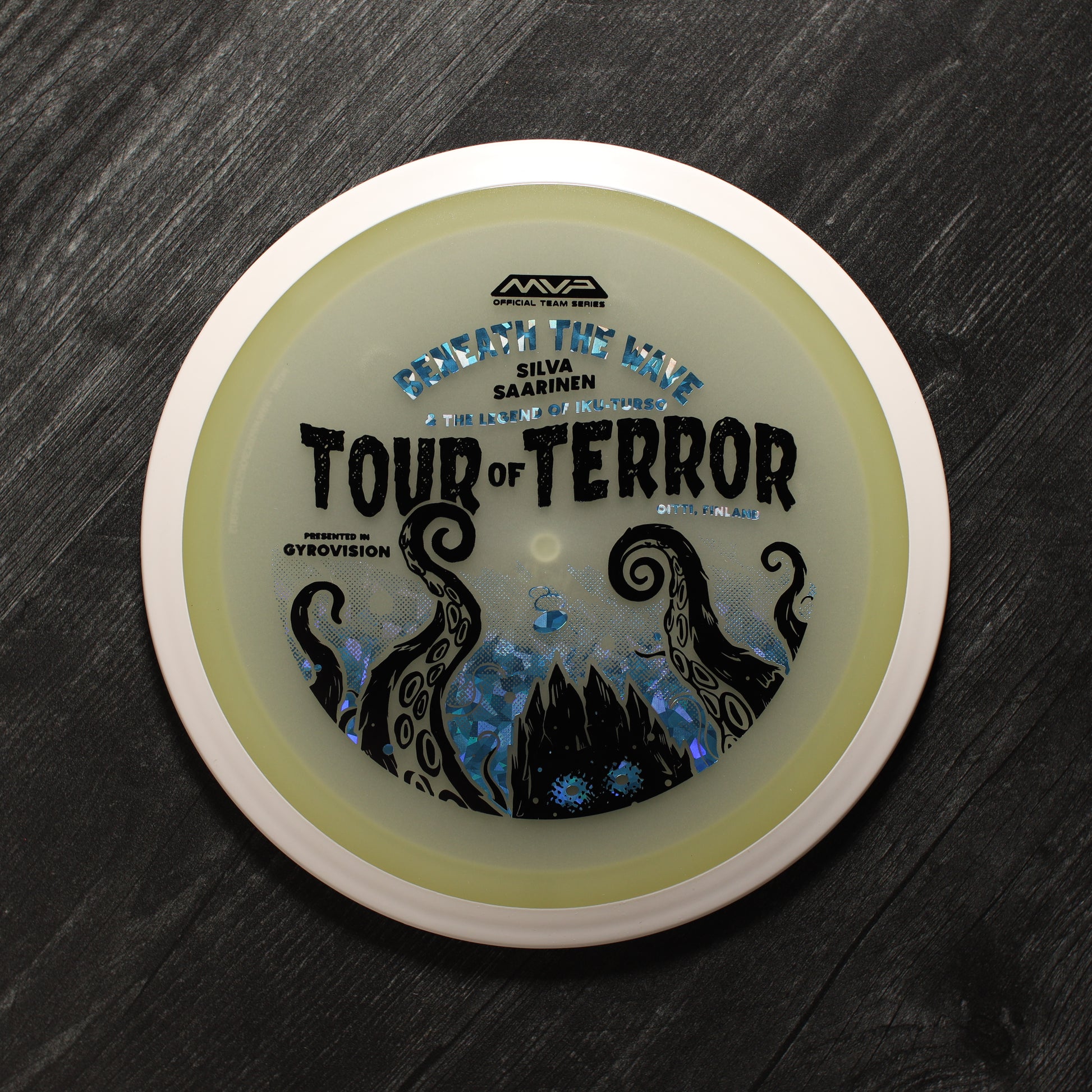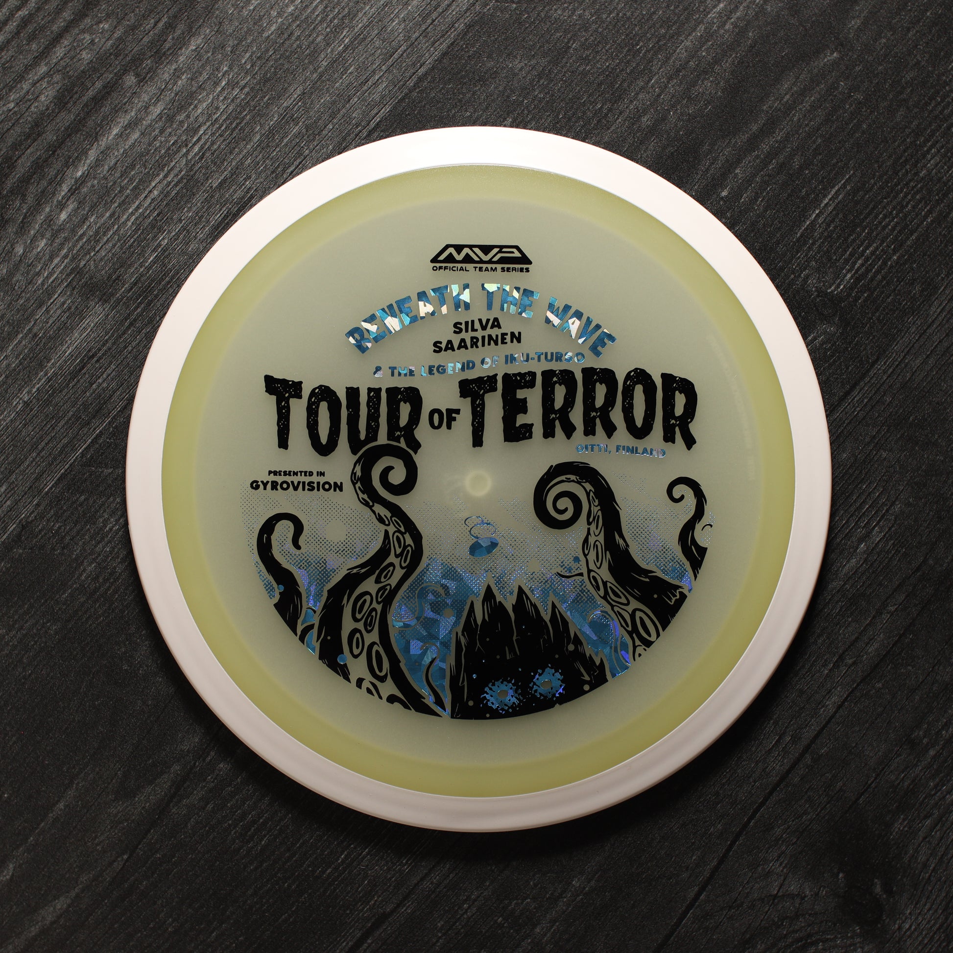 In the waters of Finland, a terrifying creature awaits. Known as the Iku-Turso, this malevolent sea monster has struck fear into the hearts of mankind for nearly 200 years. Inspiring not only fear, the Iku-Turso’s legend is so great that it is also featured in epic poetry, known as The Kalevala, dating all the way back to 1835. Now this creature returns thanks to an ominous illustration by Matthew Jorde on the Eclipse Wave! First released in 2023 for the OTB Open, you can now help support Silva Saarinen’s disc golf efforts with the only release of it since! Try your very own and discover why the Wave is one of the best selling drivers in MVP history!