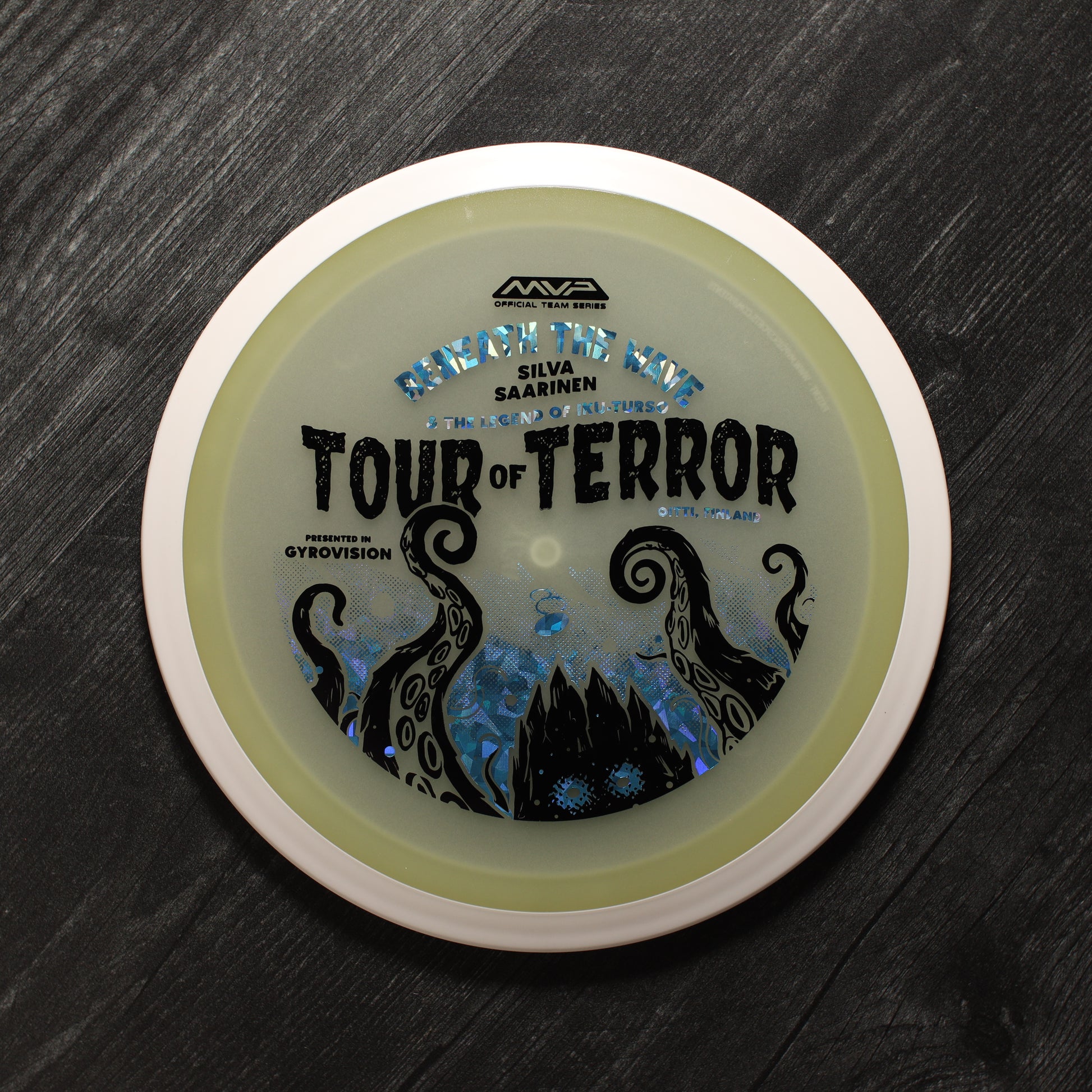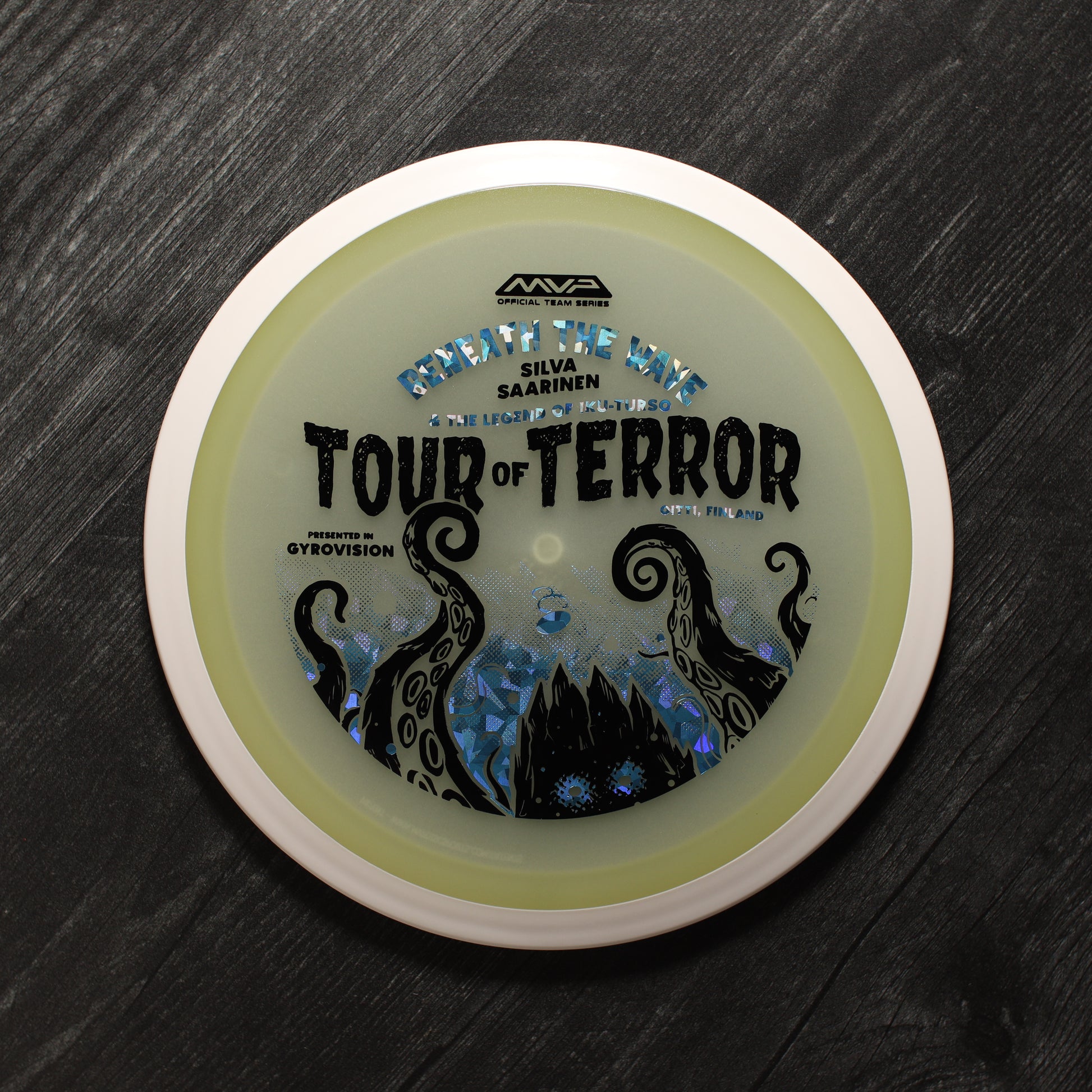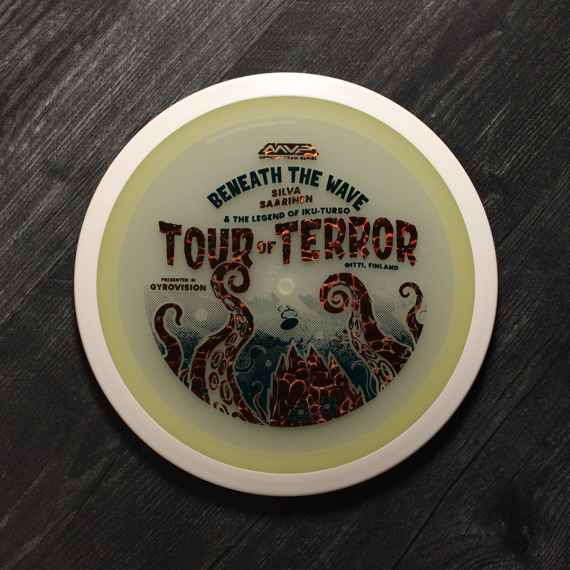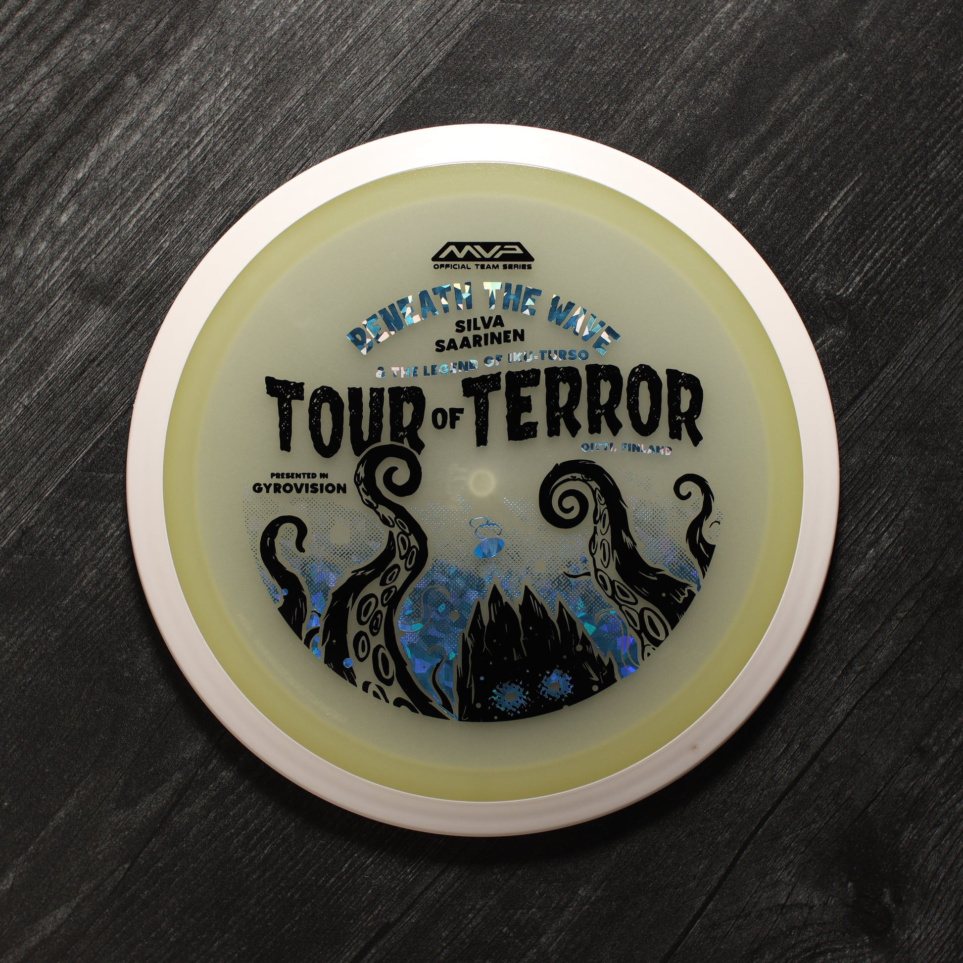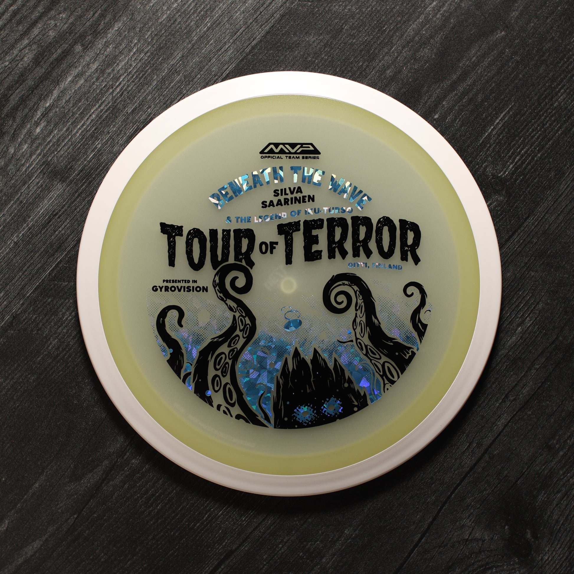 In the waters of Finland, a terrifying creature awaits. Known as the Iku-Turso, this malevolent sea monster has struck fear into the hearts of mankind for nearly 200 years. Inspiring not only fear, the Iku-Turso’s legend is so great that it is also featured in epic poetry, known as The Kalevala, dating all the way back to 1835. Now this creature returns thanks to an ominous illustration by Matthew Jorde on the Eclipse Wave! First released in 2023 for the OTB Open, you can now help support Silva Saarinen’s disc golf efforts with the only release of it since! Try your very own and discover why the Wave is one of the best selling drivers in MVP history!
