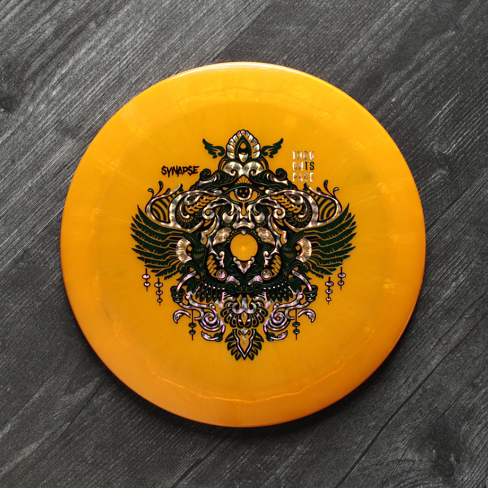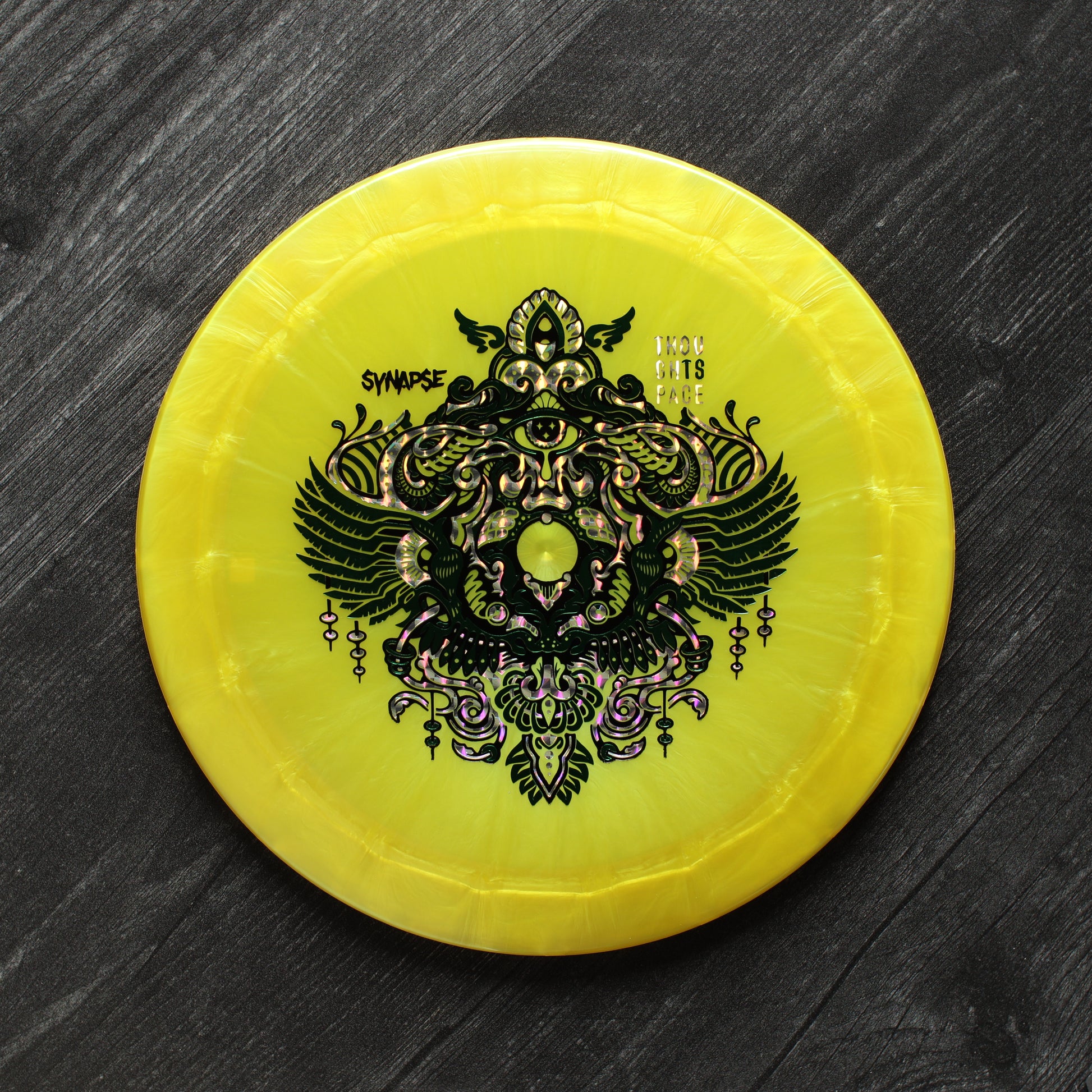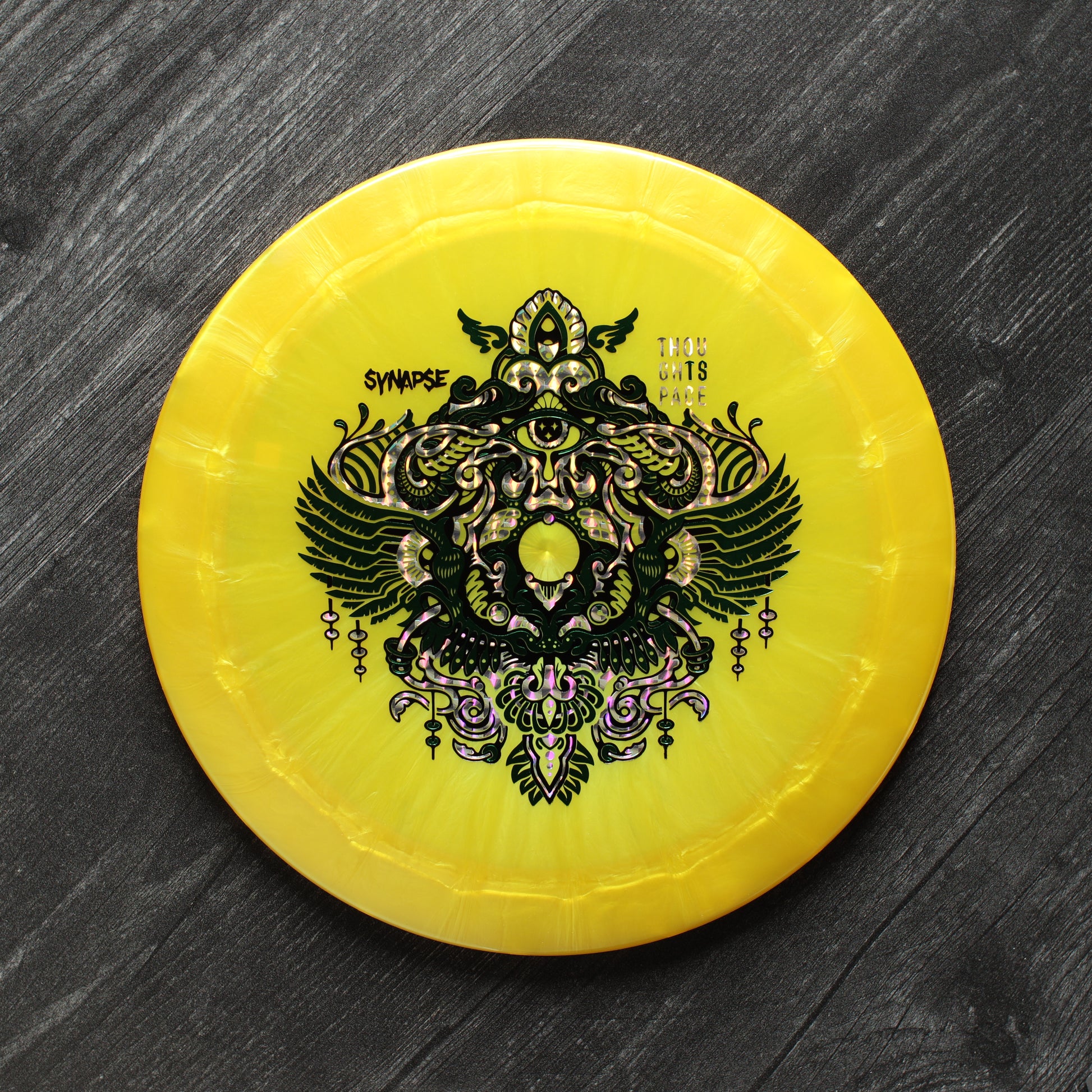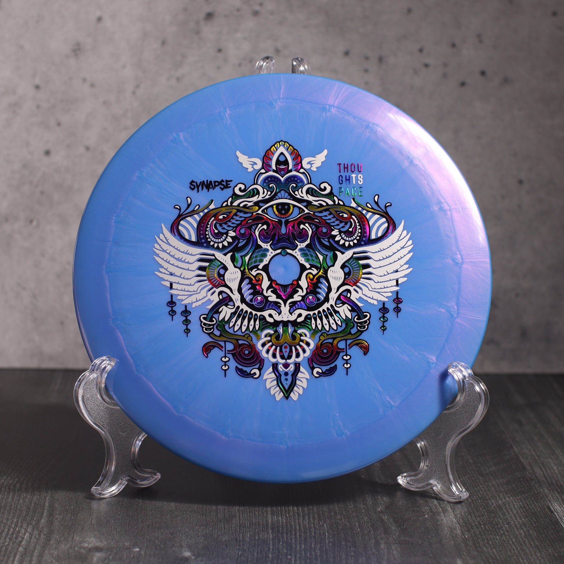 Striking a harmonious balance between distance and accuracy, the Synapse represents Thought Space Athletics' flagship entry into the true (pro) distance driver slot. Stable enough to handle big arm speed or stiff headwind, with just a hint of high-speed turn; the Synapse finds its equilibrium as the reliably stable long-bomber in your bag. Bridging the gap between the Animus and your favorite overstable high speed driver, the Synapse is a staple in any bag.